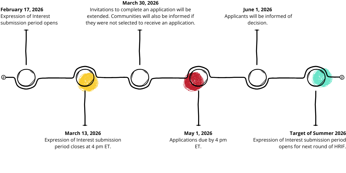 An Expression of Interest (EOI) will be used to assess eligibility and project suitability for HRIF. Based on EOI responses, communities may be invited to complete an application.